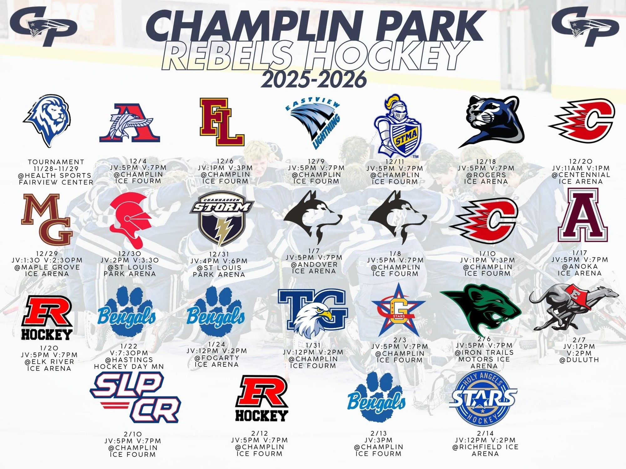 The 2025 - 2026 hockey season meeting dates are listed below and are also available on the Crossbar app.